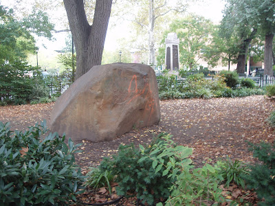 At first the mayor steadfastly refused to remove the rock, but he eventually caved (hoho) to pressure from the police and had his excavation company transport the offending boulder back across town. It is not yet clear whether the mayor will face criminal charges.